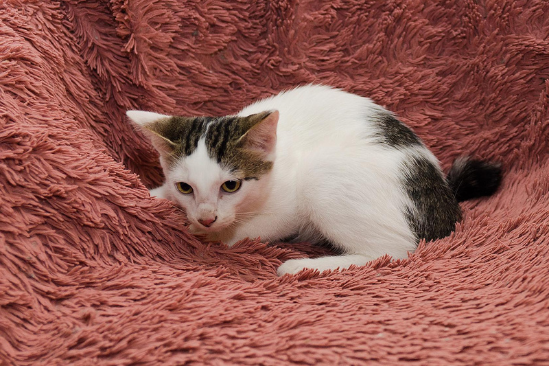 Сэм был подобран на улице, куда "добрые" хозяева выселили пятерых котят и маму-кошку.