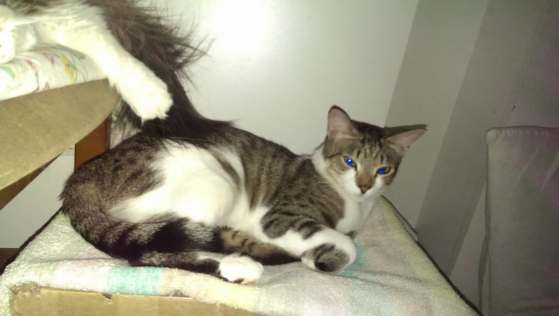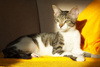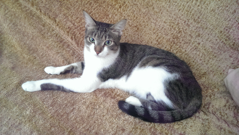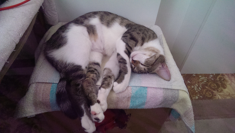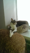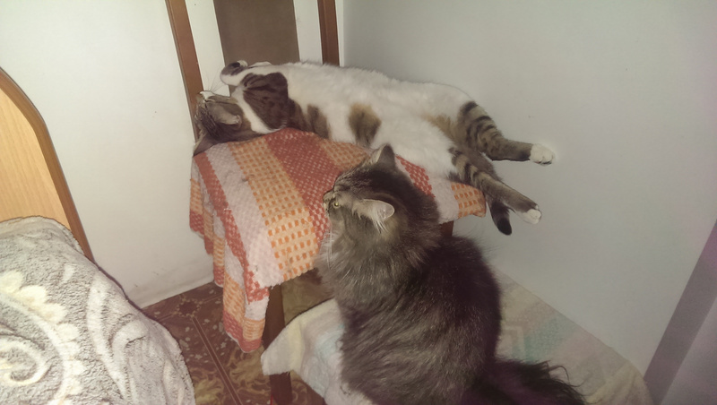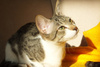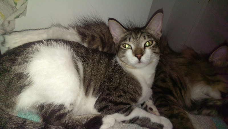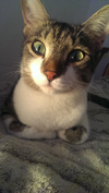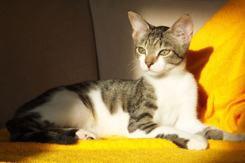 Обожает старших кошек, страется отмыть их до блеска, тут же закусать, развеселить и носиться по квартире дружною толпой!