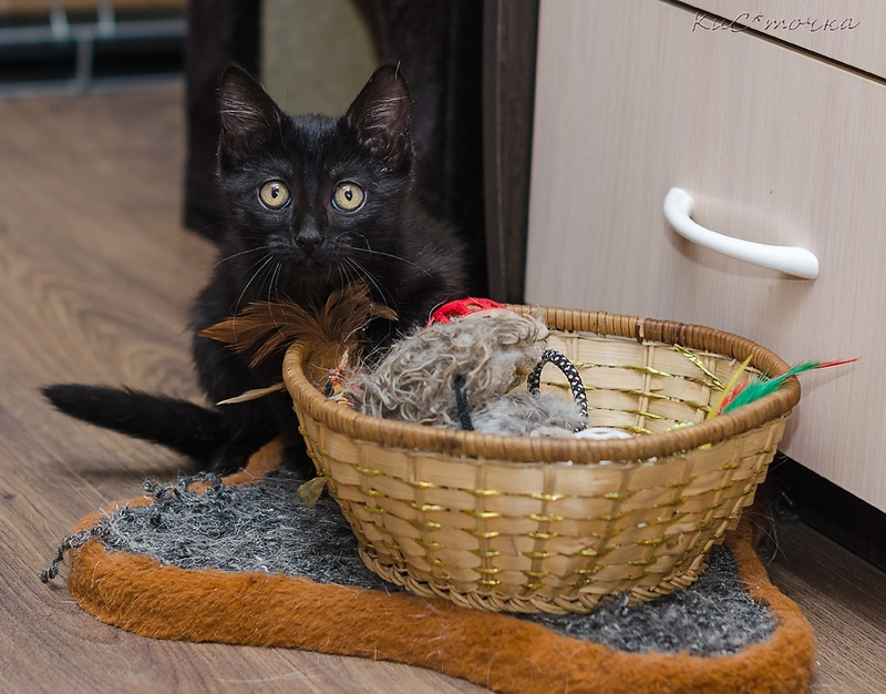 Лоток прекрасно освоила, кушает корм Про план для котят и влажный Феликс. Здорова совершенно. Проглистогонена, готовится к первой прививке.