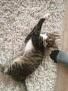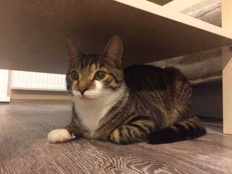 Ищем новых хозяев котику-подростку Семёну, не кастрирован. Найден 1 октября в районе метро Покрышкина, старые хозяева не нашлись. Ест сухой и влажный корм, в лоток ходит исправно, мил, красив, полосат и игруч.