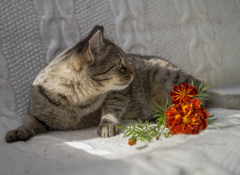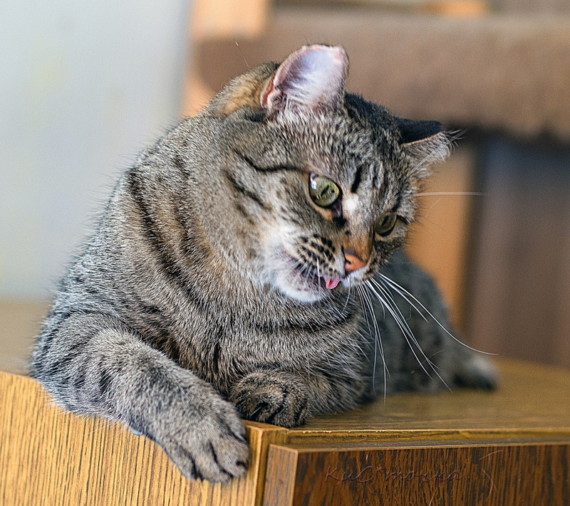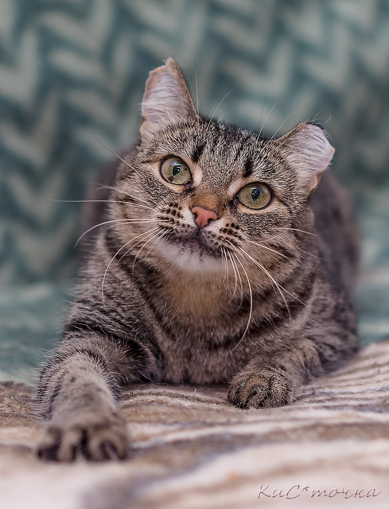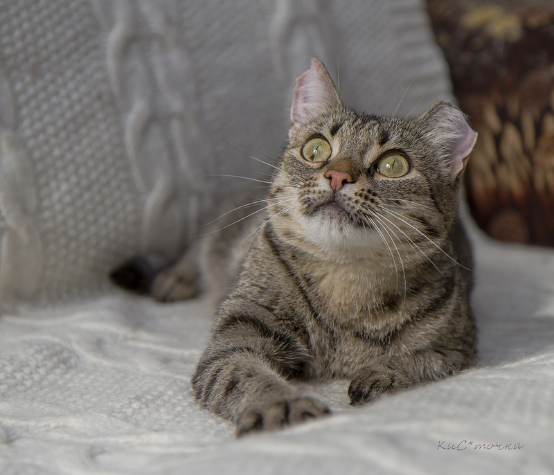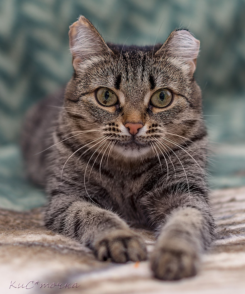 Сегодня о прошлой боли, страхе, голоде, напоминают ее обмороженные ушки. Ее характер и отношение к другим кошкам, тоже напоминают ее бродячую (недолгую бродячую) жизнь. Бонька опасается других кошек, сейчас конечно уже лучше, но она тяготиться их присутствием, не дерется, не прячется, о просто наблюдает за всеми со стороны.