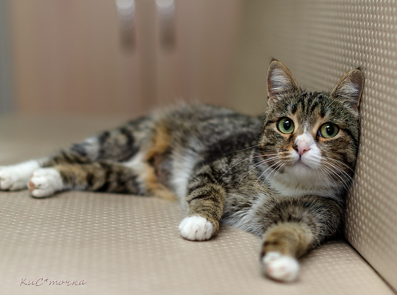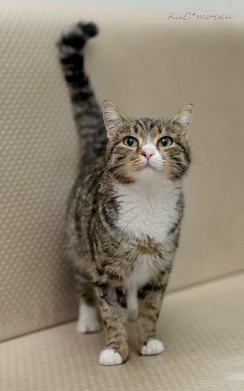 Кнопочка - молоденькая кошечка 1,5 лет. Очень нежная малышка, которая радуется любой ласки от человека, приходит сама на погладушки, подставляет свою головушку для почесушек) Обожает петь кошачьи мурпесенки.