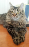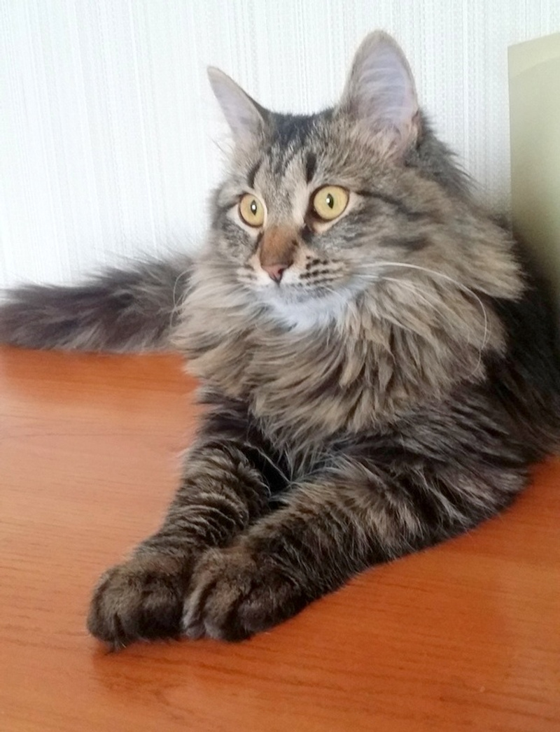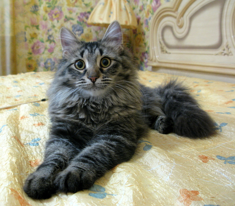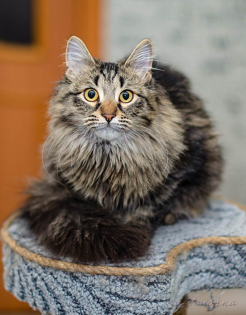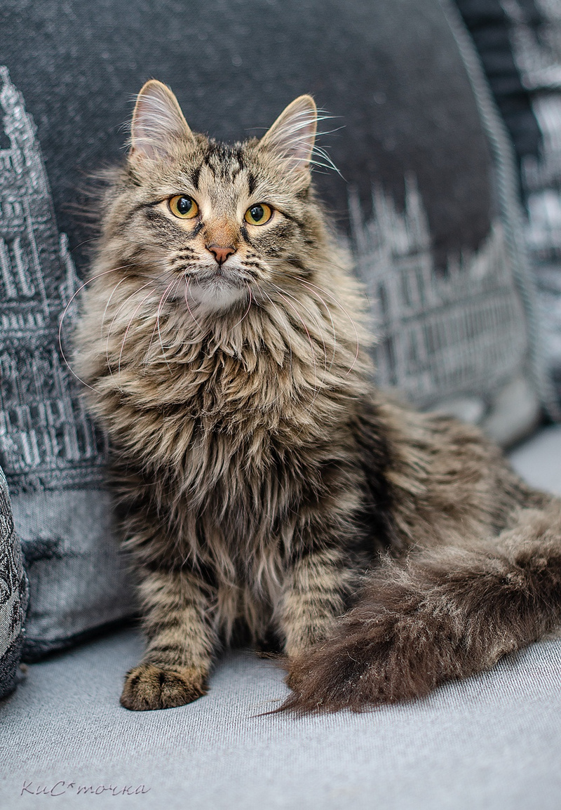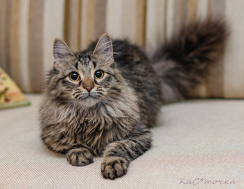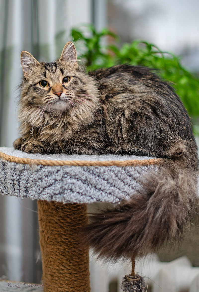 Невероятно ласковая и мурчлявая малышка. У неё шикарный, пушистый хвост, которым она умеет кокетливо пользоваться, то прикроет им мордочку, то распушит и гордо ходит по квартире, любуйтесь!