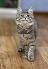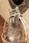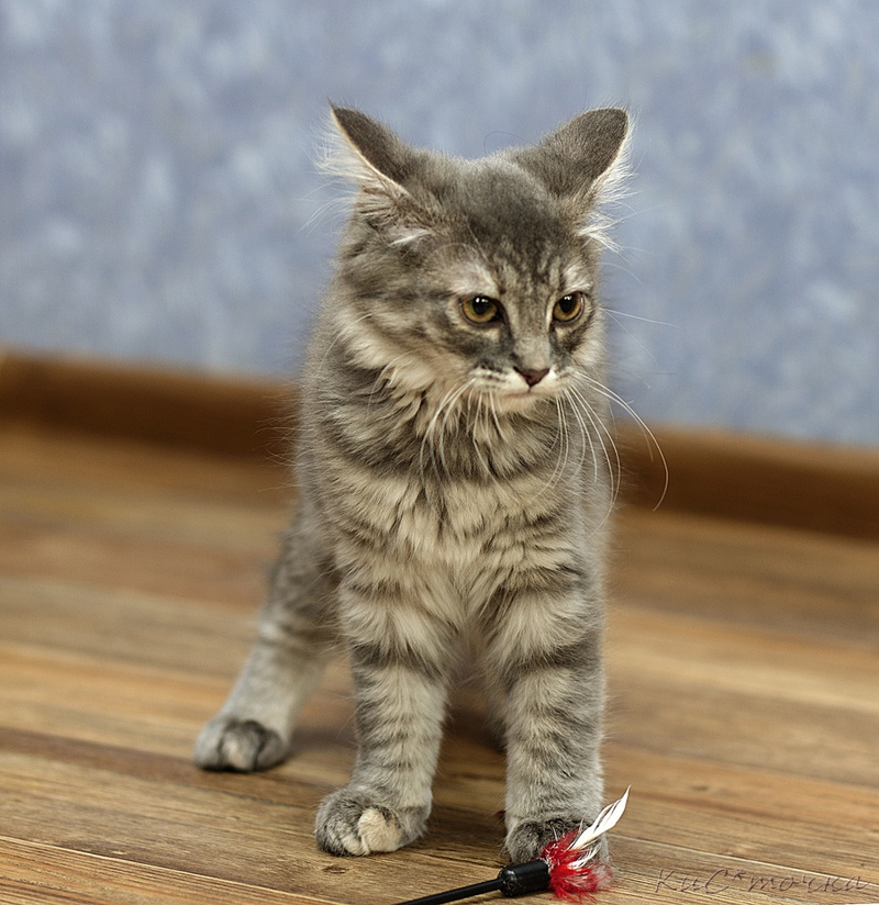Очаровательная крошечная Малышка, ей примерно 3 месяца, но она очень смышлёная. Как только её принесли, тут же нашла лоточек, а потом деловито пошла драть когтеточку. Хорошие манеры у неё в крови!