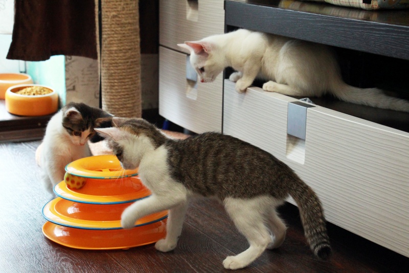 В состав нашего кошачьего коллектива входят только одаренные котята, очень талантливые, умные , прилежные и безупречные в поведении. Везде и всегда держатся своей компанией, любят друг друга и жалеют. В человеке ищут защиту и опору. Любят играть игрушками, очень подвижные и активные, потом дружно все отдыхают.