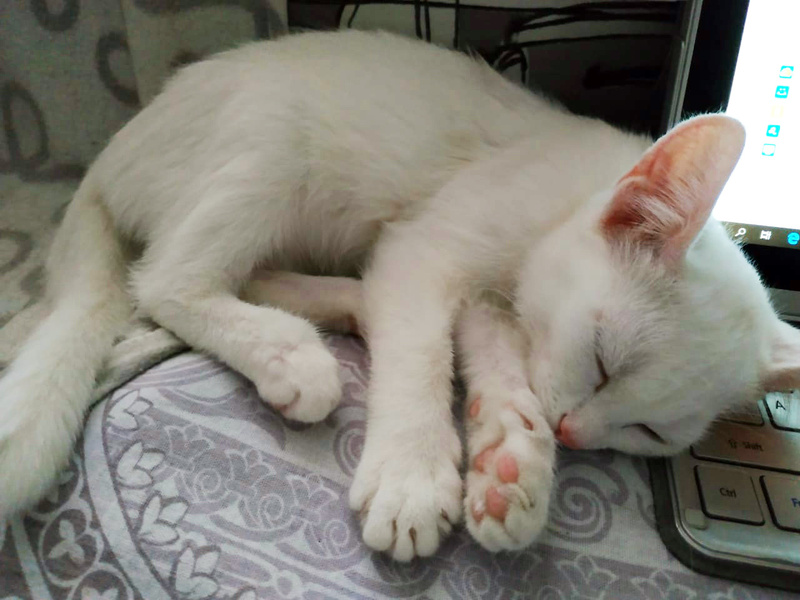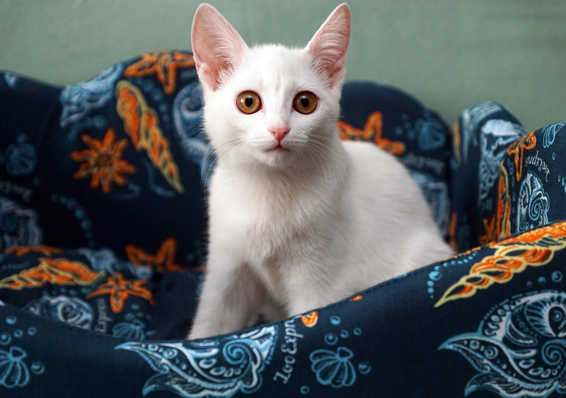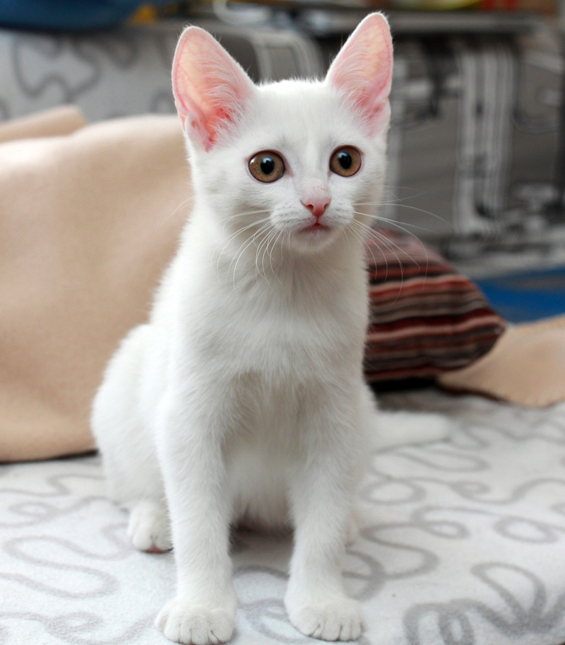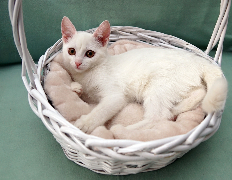 Она самая спокойная по сравнению с другими братиками и сестричками, нежная, хрупкая, ласковая. Играет игрушками, принимает участие в совместных играх и ничем не уступает остальным котятам. Аккуратная и прилежная девочка, все ее любят и жалеют.
