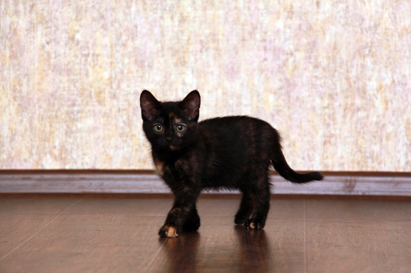 Возраст приблизительно 2.5 мес, привита, приучена к лоточку, очень аккуратная девочка. По характеру бойкая, не из робкого десятка, активная, проворная, быстрая, она постоянно чем то занята, все время в поиске приключений, везде нос засунет, все ей интересно, без дела не сидит. На руках сразу мурлыкает, нежно перебирает лапками. В целом малышка положительная, доброжелательная, вызывает только позитивные эмоции и умиление.