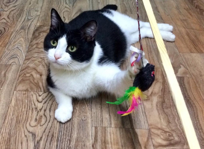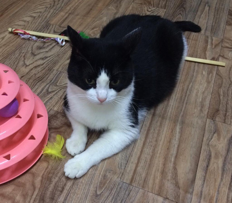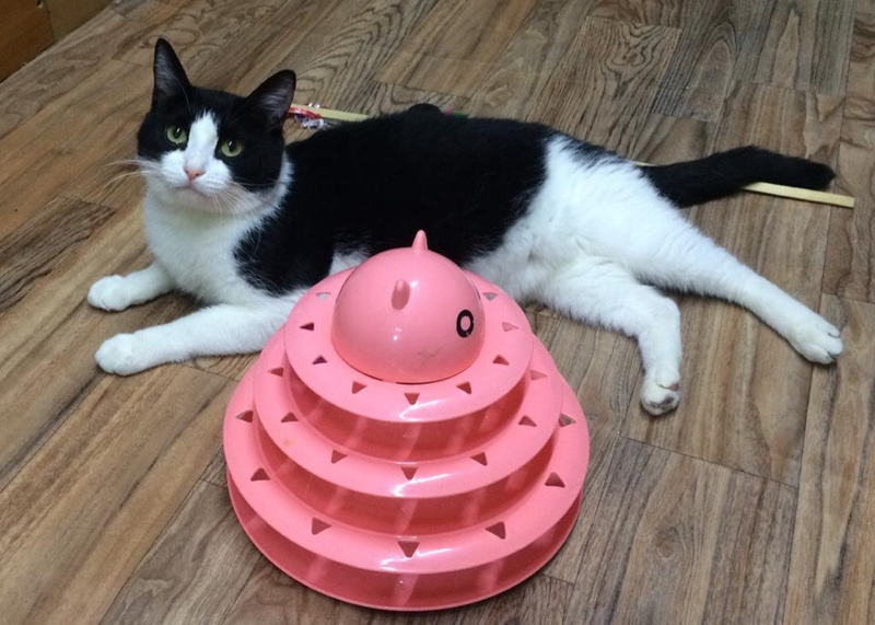 Тут он освоился, вспомнил как пользоваться лотком и когтеточкой, подружился с другими кошками и похорошел.