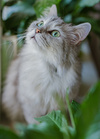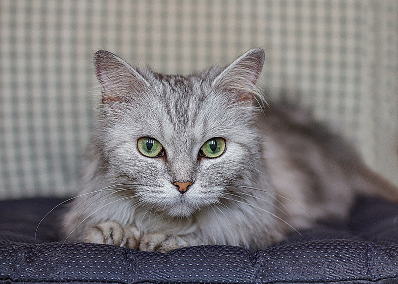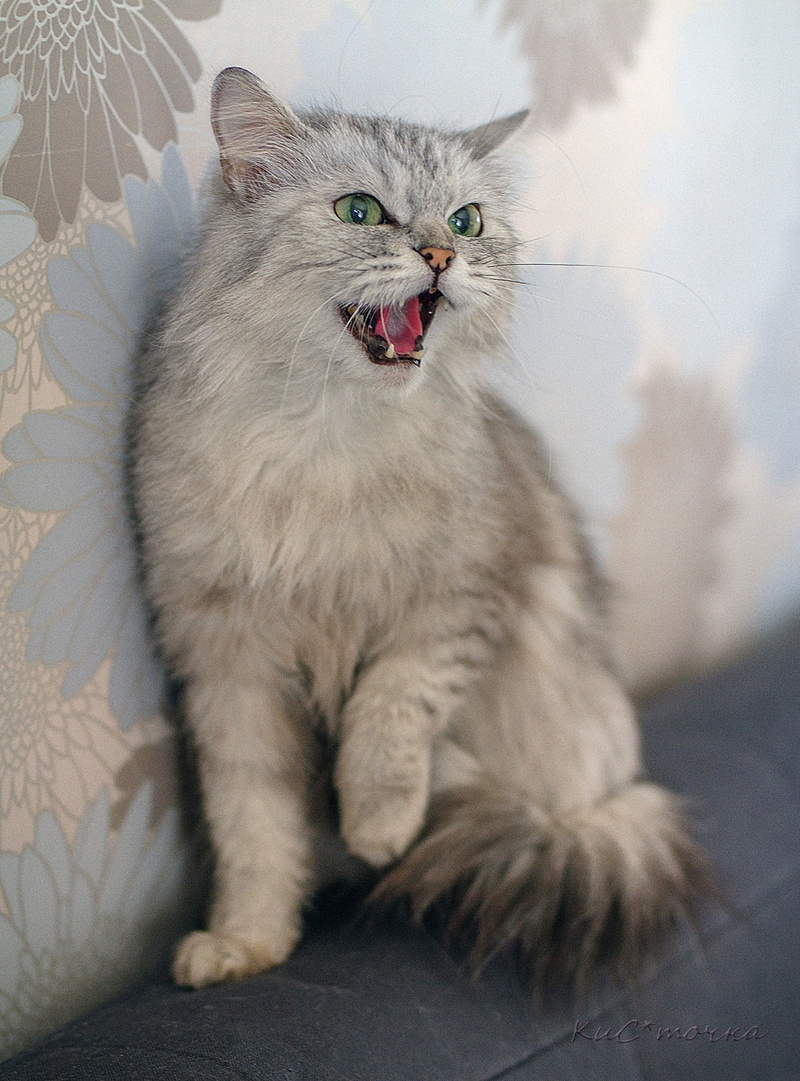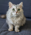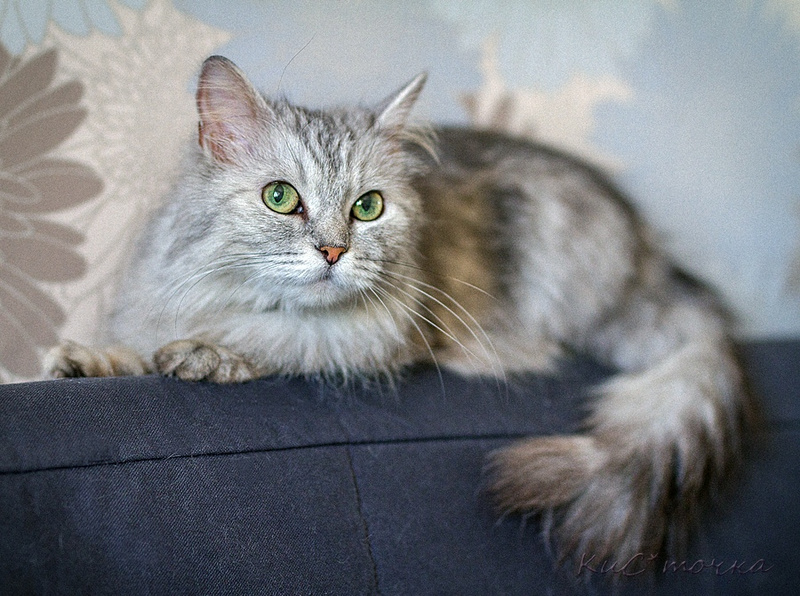 По характеру Мега – настоящая леди, очень культурная, уравновешенная и спокойная, чистюля. Любит часами лежать, наблюдать за происходящим вокруг, вылизываться, спать, компактно свернувшись калачиком! Любит, когда ее вычесывают, и, хотя ее шерстка в колтуны не сбивается, она требует регулярного несложного ухода.