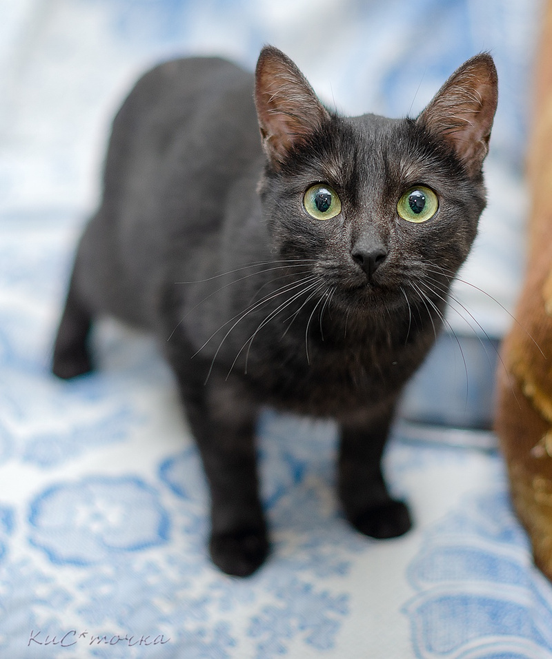 Очередная подъездная находка. Невероятно трогательная и забавная девчонка-подросток. У этой миниатюрной красавицы интересная и яркая внешность: большие круглые глазки, богатая мимика и необычный окрас (нет, Милагрес не черная, она скорее «черный дым» или «мокрый асфальт»). Ласковая, нежная, общительная, мурчливая, контактная девочка – ей бы в заботливые, любящие ручки. Очень смешная, подвижная, веселая барышня, много и изобретательно играет, при этом человек у нее на первом месте – любит обнимашки и целовашки. К собратьям дружелюбна, но себя в обиду не даст.