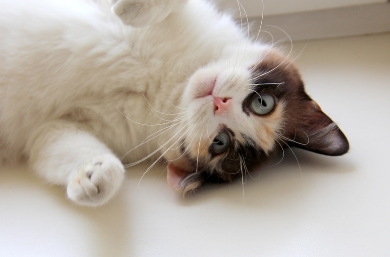 Очень ласковая, мурчит, если её погладить, головушку подставляет, а вечером приходит спать под бочок. Так сладко засыпается под её тихую песенку.
