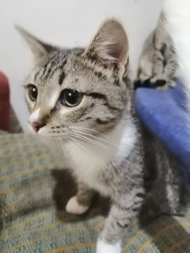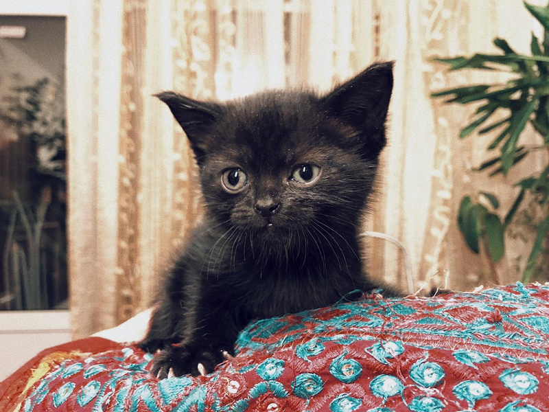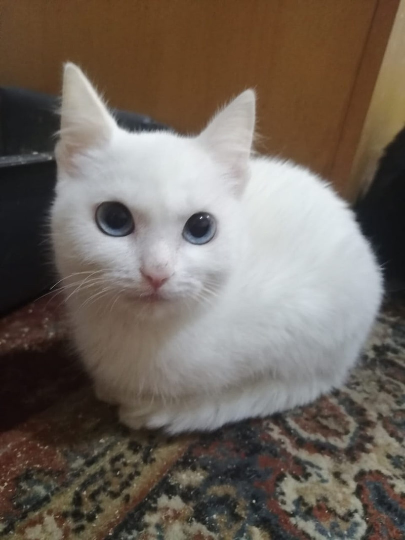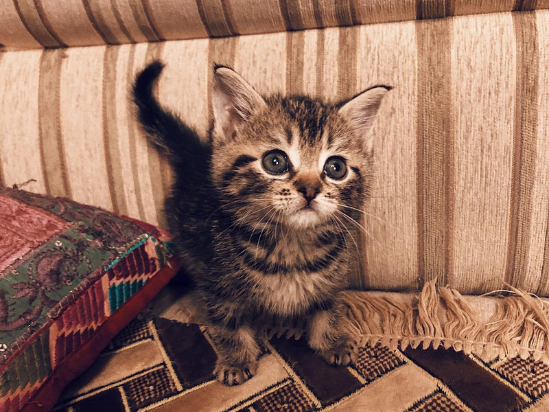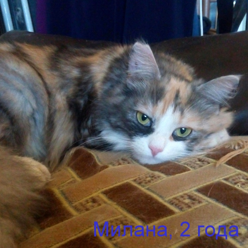 Кошечку назвали Стефани. Она чудесная и благодарная кошка, метис британца, возраст около 2 лет. Лотком пользуется.