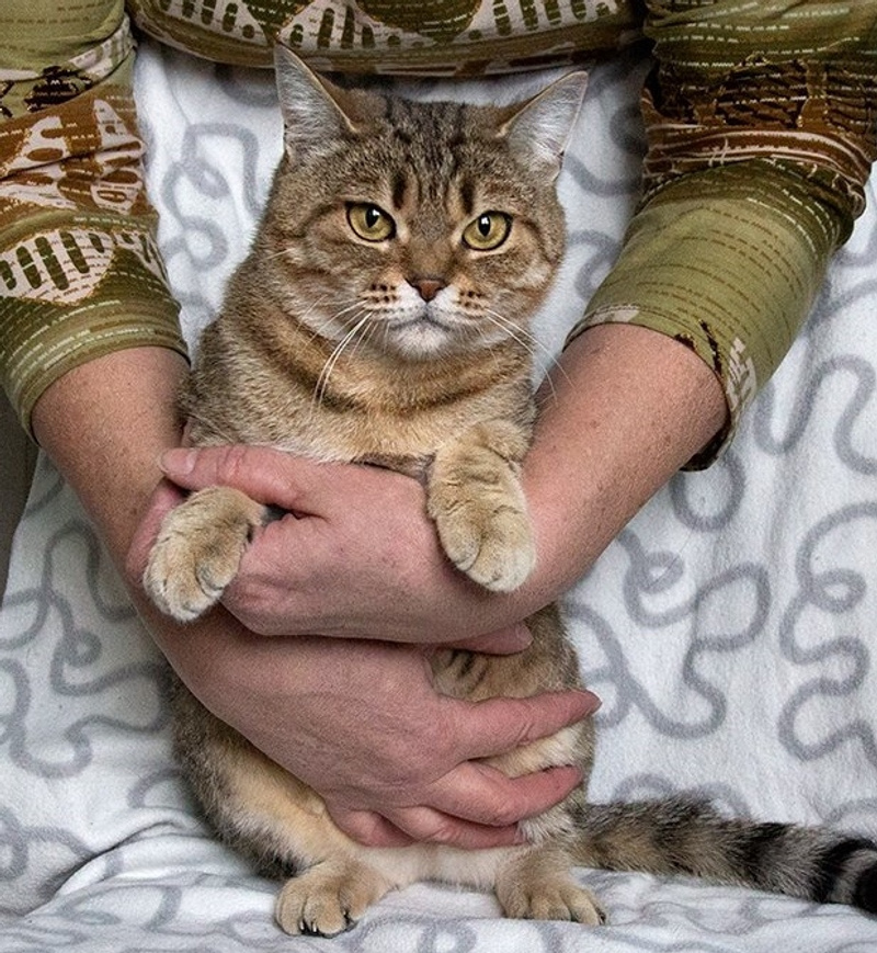 Его выбросила из окна 7 этажа хозяйка со словами "Надоел уже!" на глазах у девочки-подростка. Девочка очень испугалась, схватила котика на руки, занесла в подъезд и позвонила мне.