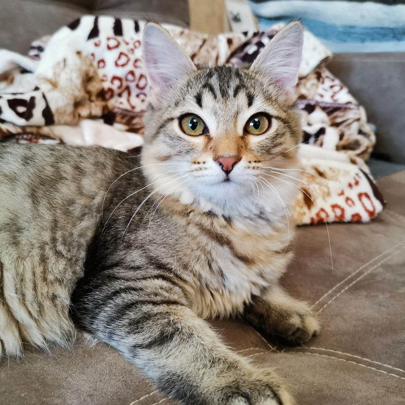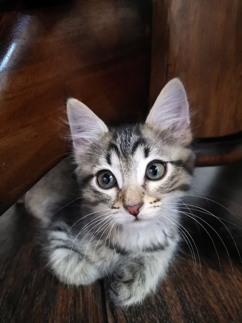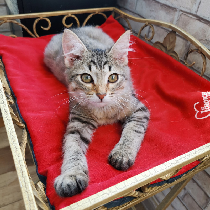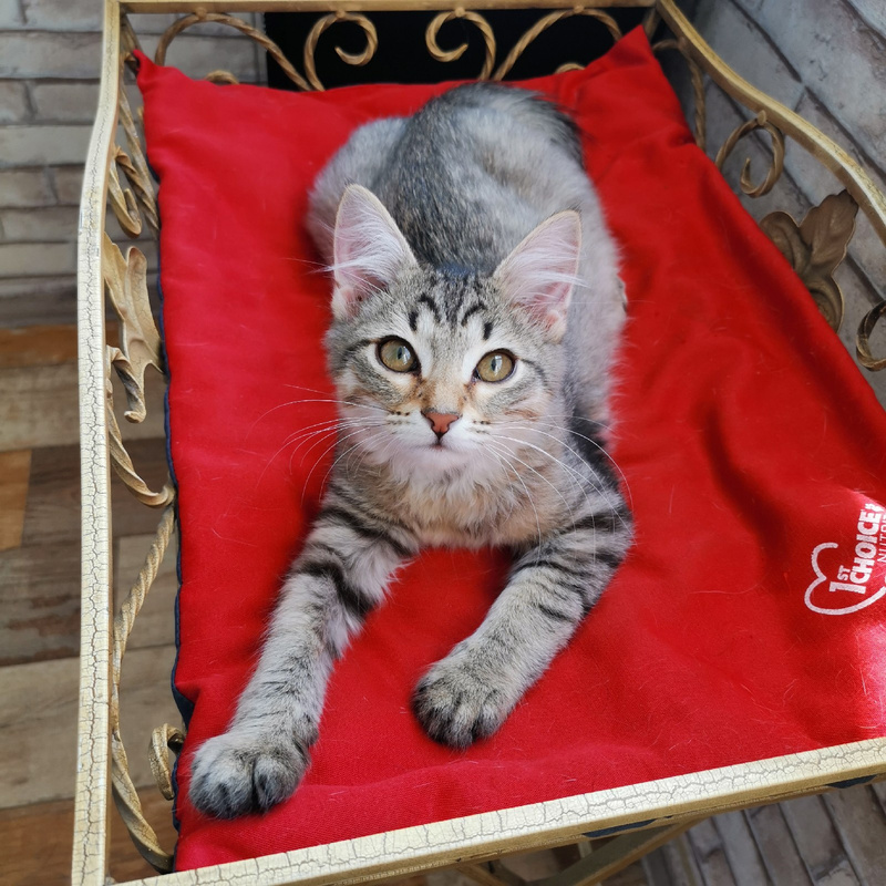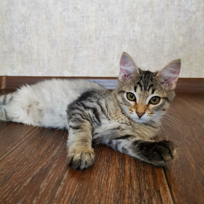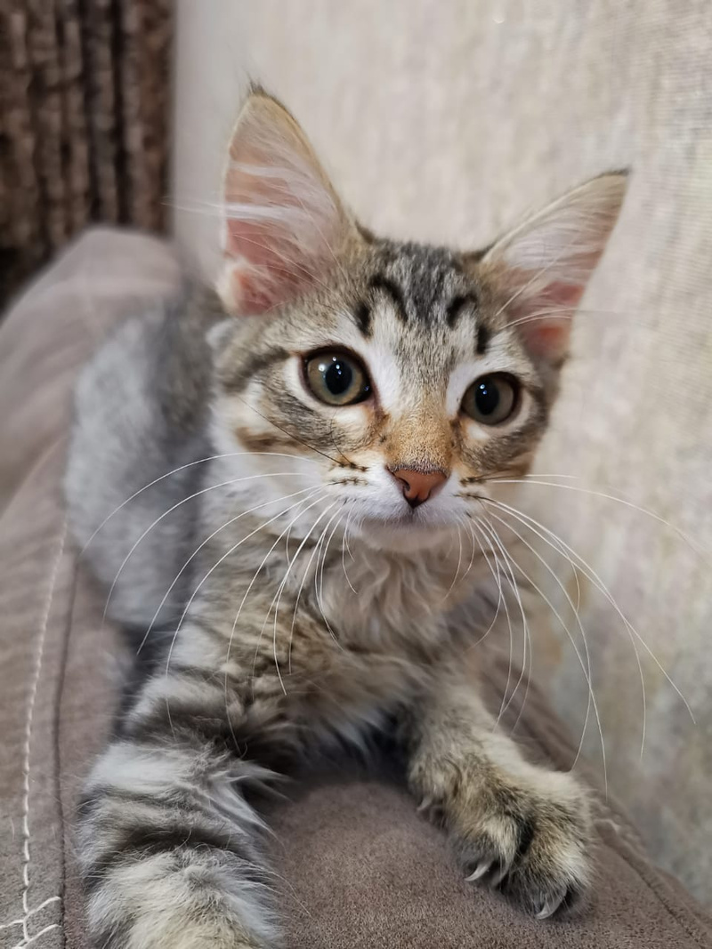 Котенок очень хороший, симпатичный, активный, веселый, доброжелательный, всегда в хорошем настроении.