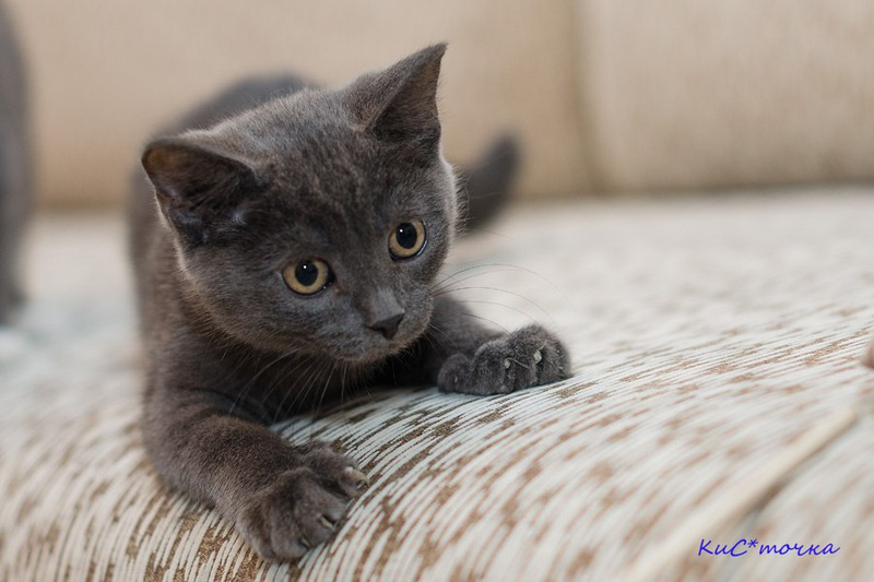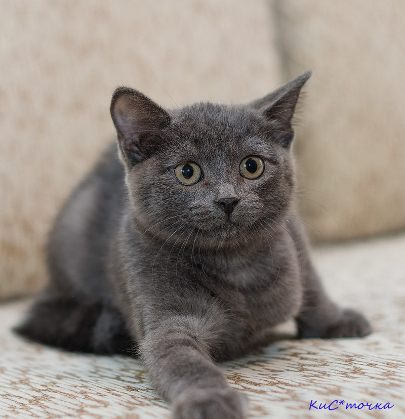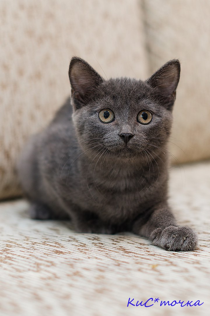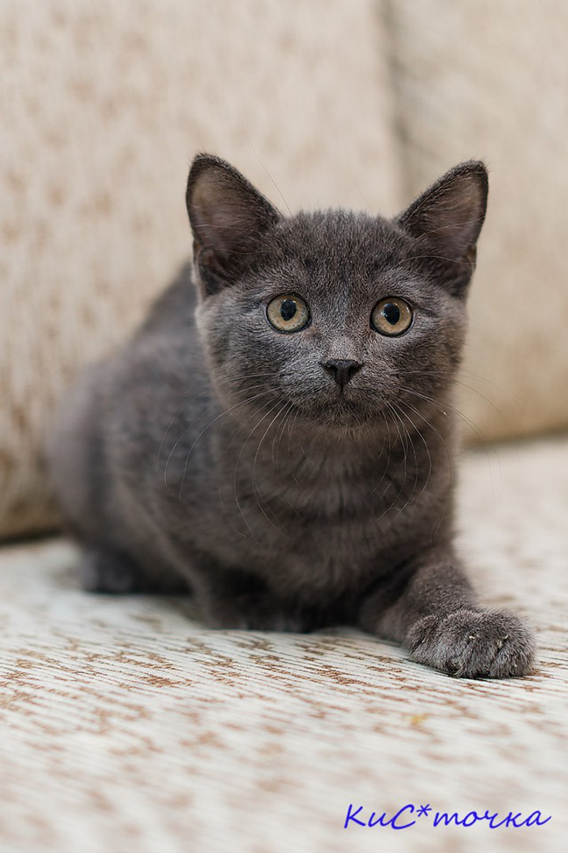 Назвали котёнка Борей. У него мягенькая, набивная шубка голубого окраса. Вырастет в шикарного кота! Сейчас ему около 2 месяцев.