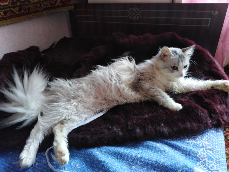 Котика надо подстричь. т.к много колтунов. Показать ветеринару: у меня на это нет денег.