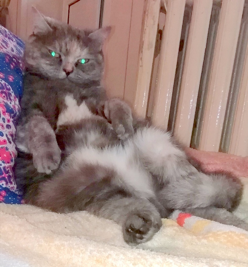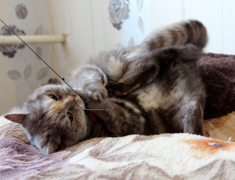 Её нельзя брать в руки, поскольку её тушка-кабачок неприкосновенна. Гладить только по голове, и только тогда когда она хочет. Иногда может снизойти до мур-мур и поласкушек с подставлением щёчек.