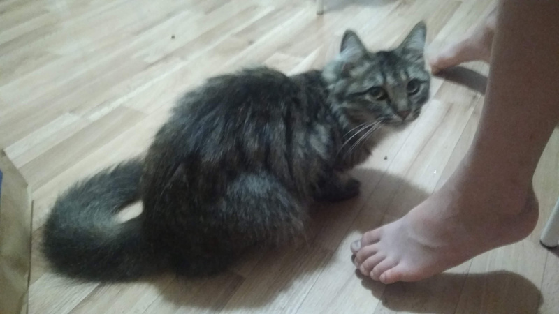 Кошечка домашняя. Соседка взяла ее прошлым летом и она была совсем маленькая, так что возраст - где-то полтора годика.