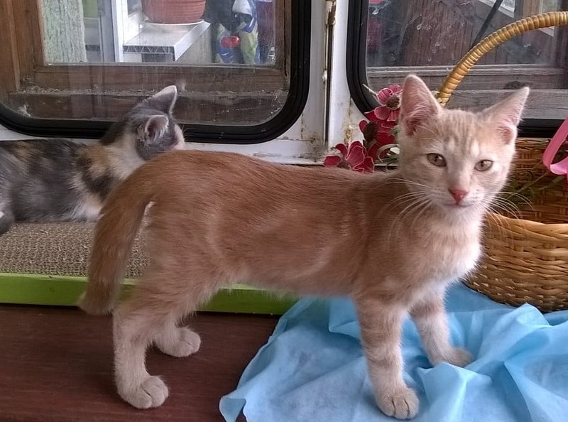 Малышам около 3,5 месяцев. Рыжий мрамор-котик Гарик. Очень смелый, ласковый, умный, игривый малыш.