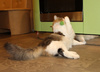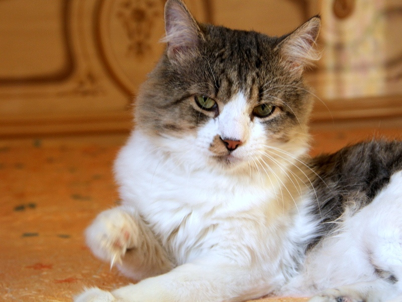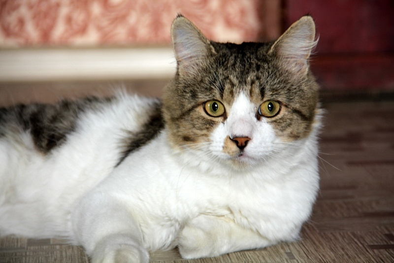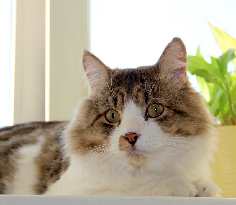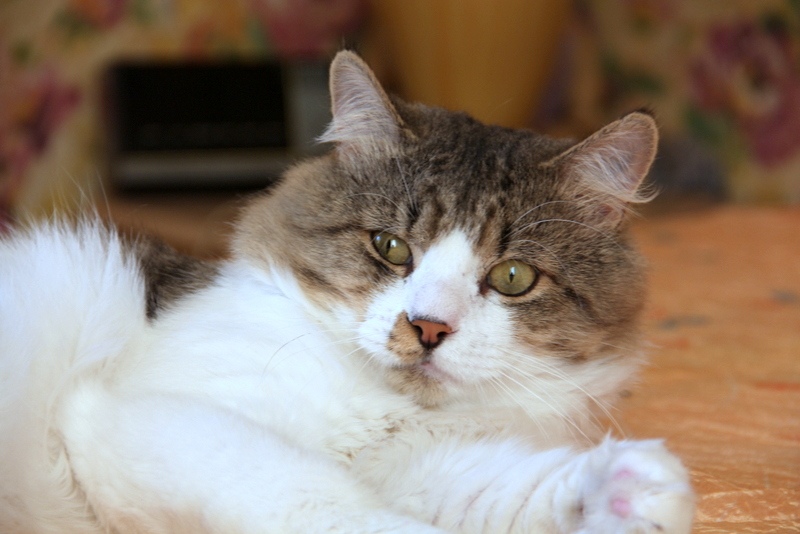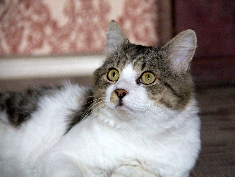 Добрый, ласковый, всегда рядышком. Хороший котик, мурчит.