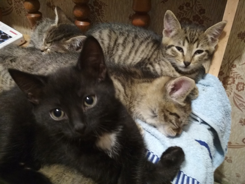 Родились 7 августа, сейчас живут отдельно от мамы, едят всё, зачем нужен лоток, знают.