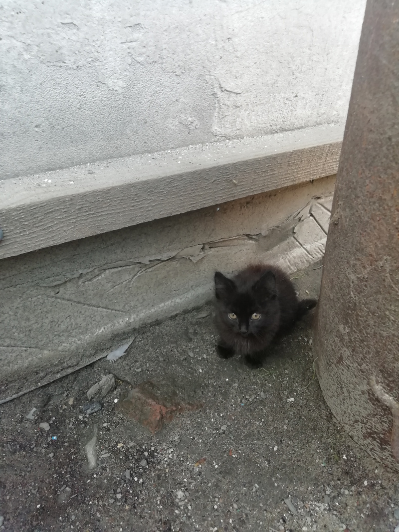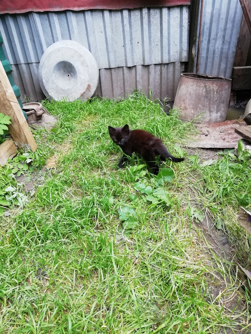 Котик полностью чёрный (3 месяца), немного пугливый, шустрый, пушистый. Не прихотлив в еде. Рос летом на улице с кошкой. Нет возможности самой держать его дома (своих кошек много), на улице уже холодно.
