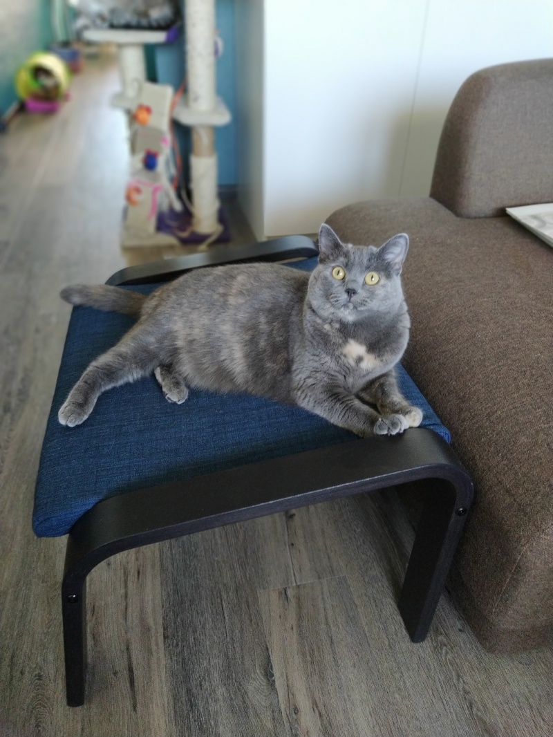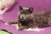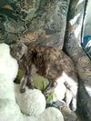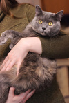 У Рыбки очень нежная плюшевая шубка (отлично согревает в холодный период без отопления), тонкий голосочек и отличный аппетит. Она любит носиться с игрушками и от души драть столбик-когтеточку (в перерывах между играми и любимым кушаньем). Привита, стерилизована, приучена к лотку с наполнителем. Кушает качественный сухой корм.