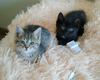 Обработали от паразитов, сходили с ними к ветеринару, приучили ходить в лоточек, сейчас учим кушать сухой корм. Возраст около 1,5 месяцев. По достижению взрослого возраста нужно будет котиков кастрировать (проконсультируем).