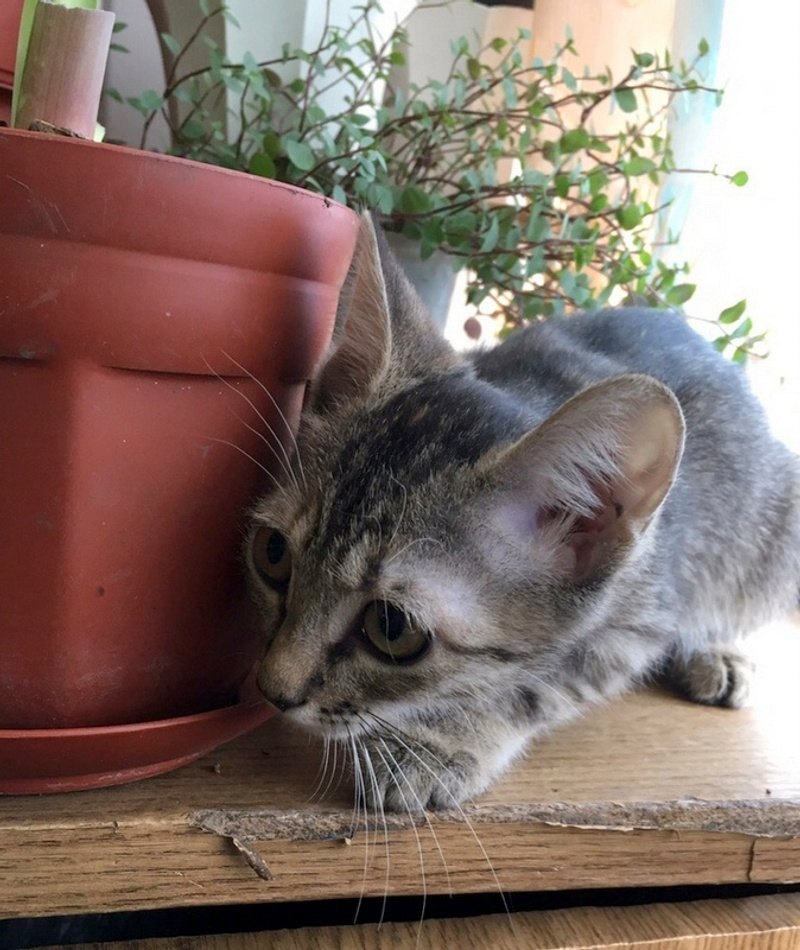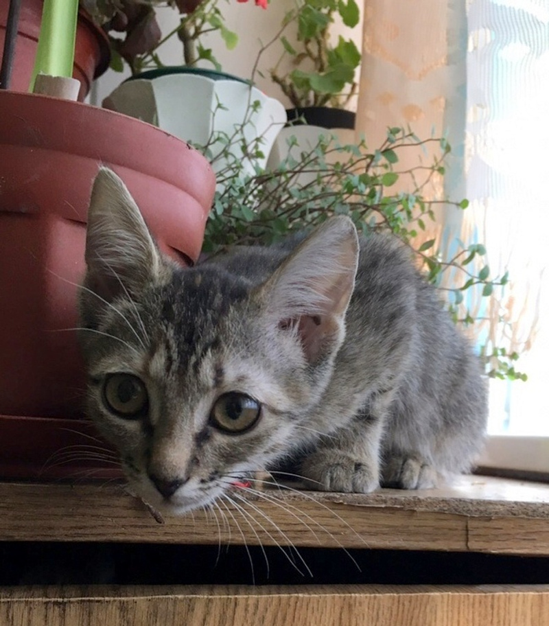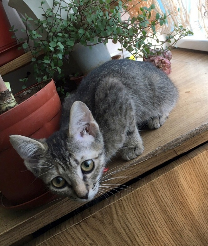 Трогательный котёнок Аврора. Её огромные, широко распахнутые глаза смотрят на мир пока с испугом, ведь в её жизни хорошее только начинается...