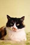 Кошечка совсем молоденькая, около 1,5 лет, воспитанная, знает лоточек, очень ласковая и нежная.