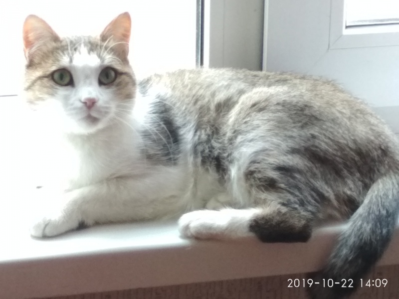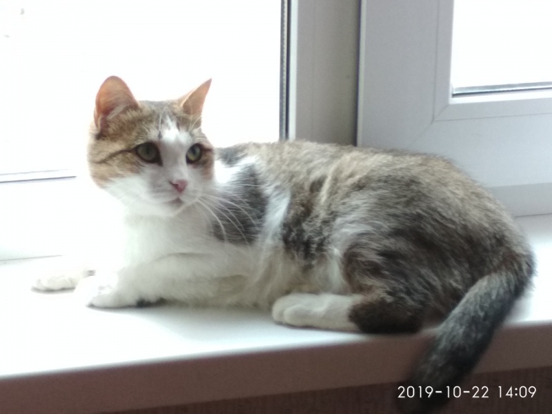 Кошка молодая, ей около 2-х лет, стерилизованная, ухоженная, в мягкой, набивной шубке, которую очень приятно гладить, спокойная, воспитанная.