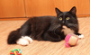 Обожает играть, в качестве игрушки подойдет все: фантики, махалки, мячики!