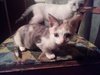 4-ый - кот, голубые глаза, белый окрас с серыми ушами и хвостом;