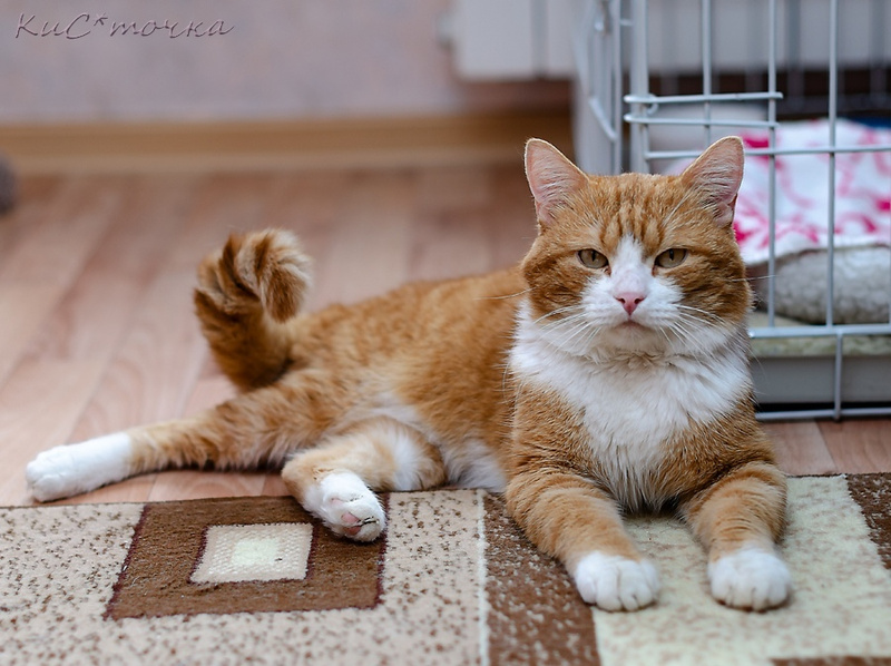 Кушает сухой Роял Канин и влажный Вискас в желе. Лоточек - с минеральным наполнителем. С правилами проживания в квартире согласен. Обязуется выполнять.