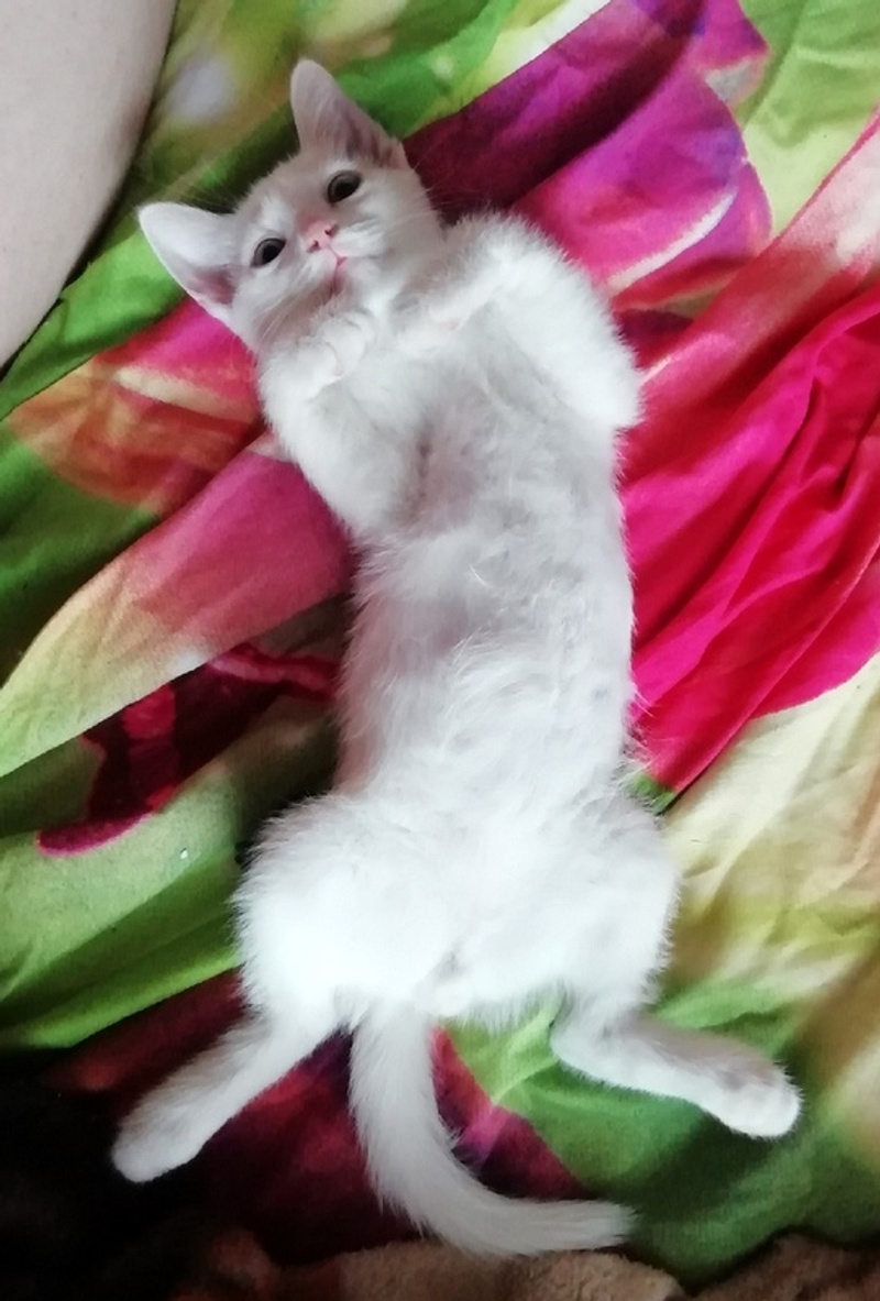 Малыш очень ласковый, придёт, уляжется рядом и включает мурчальник. Никого не боится, ни кошек, ни собак, ни людей. Все у него в друзьях!