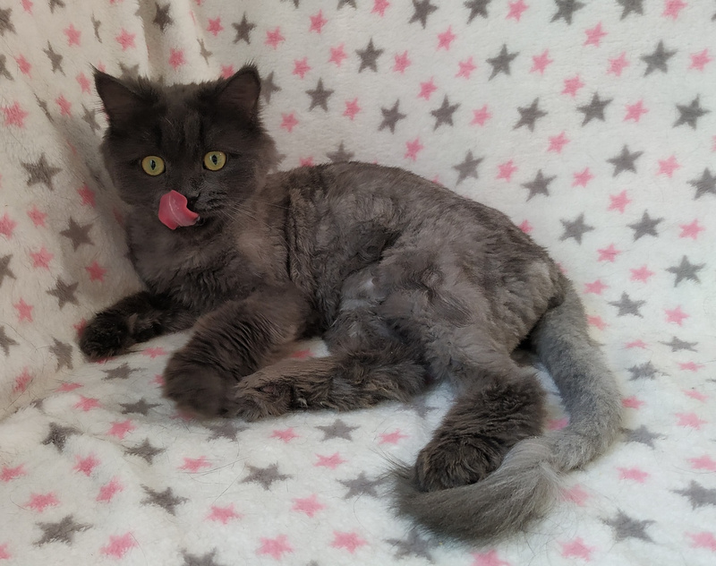Ей 2.5 года, стерилизована, прививки поставлены, какает строго в лоточек, а вот пописать может где угодно, но это из-за болезни и стресса, возможно, в новом доме, когда она успокоится и подлечится, всё наладится с лоточком.