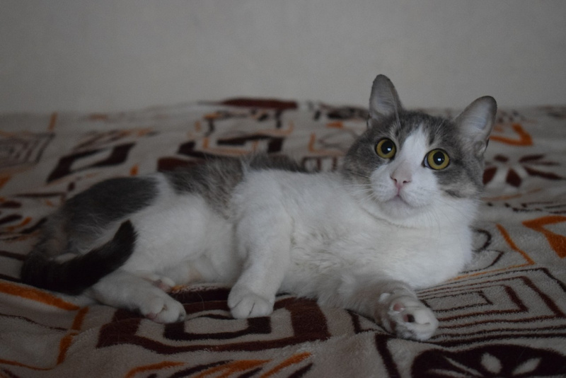 Прохору около 2 лет, он кастрирован. Питается сухим кормом, но не откажется и от обычной еды.