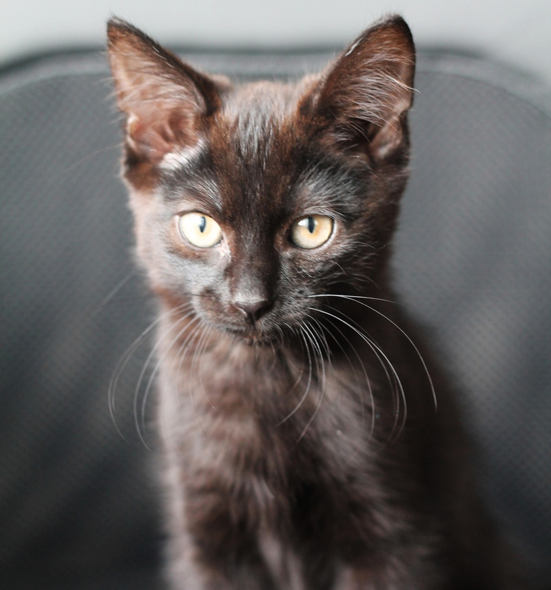 Ласковый и общительный котик ищет любящую семью. Малышу около 4 месяцев. Окрас черный с шоколадным оттенком, глаза красивого песочного цвета. Любит лежать на коленках и мурлыкать, играть с игрушками. Приучен к лотку, умеет пользоваться когтеточкой, ладит с детьми, прекрасно общается с другими кошачьими, кушает сухой корм.
