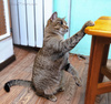 Котик очень общительный и разговорчивый, с удовольствием поддержит с вами беседу на философские темы. Ласковый, но не навязчивый. Если у вас нет настроения для общения, он найдёт, чем себя занять. Любит играть или валяться на диване. А ещё обожает покушать)))
