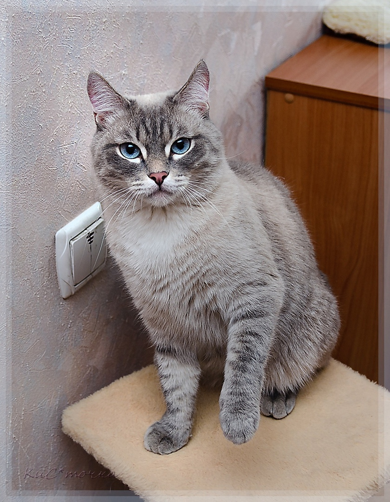 Готов осчастливить вас своим присутствием и сиянием небесных глаз взамен на уважительное к себе отношение. Не терпит фамильярностей! Не постесняется ударить лапой любого, кто допустит оплошность в его адрес. Жизнь научила его защищать себя! Уж такая она у него была....