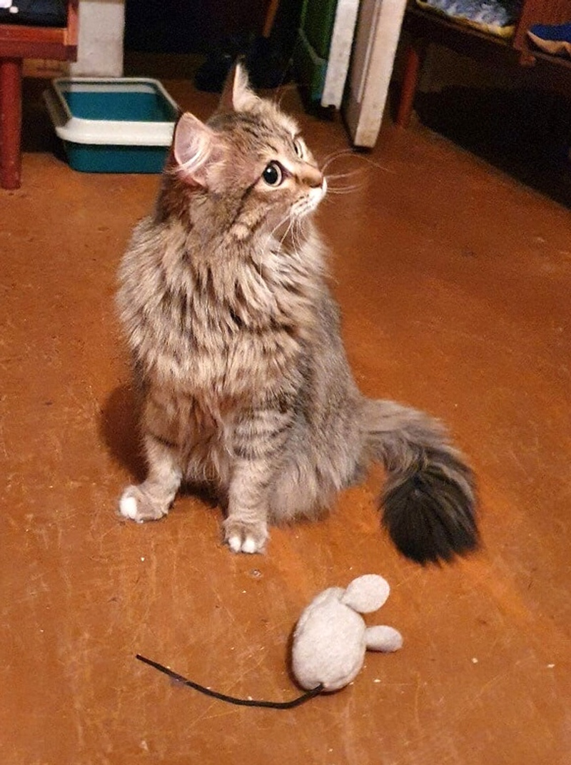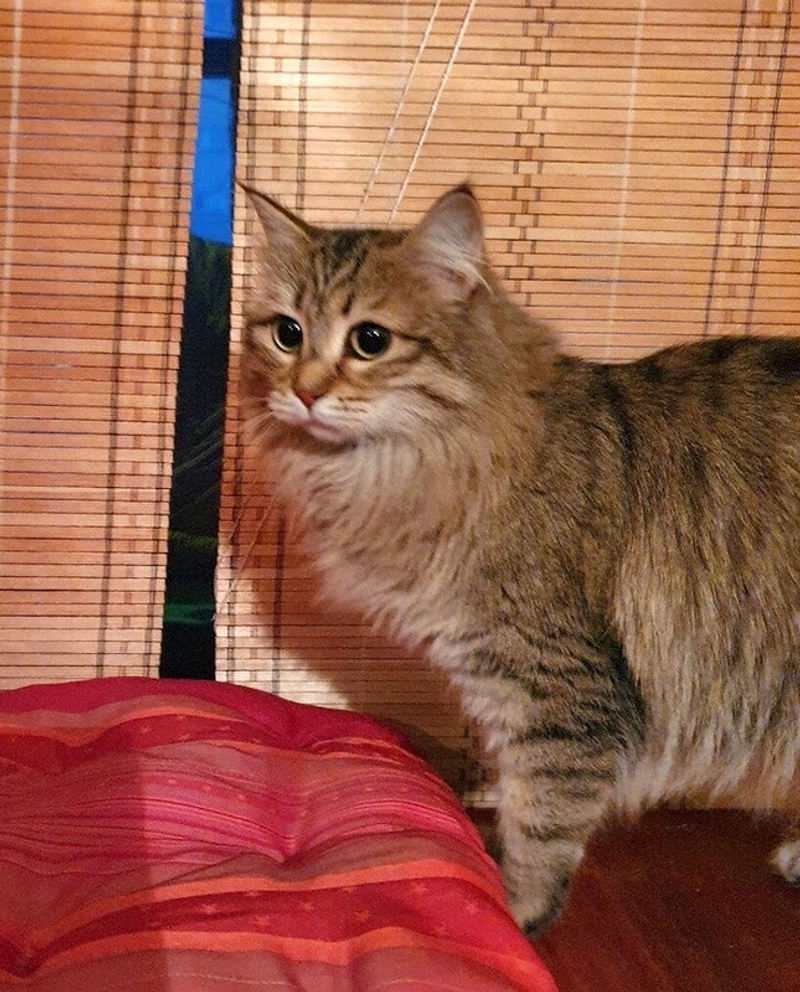 Кошечка очень деликатная, скромная, старается не путаться под ногами, не докучать своим присутствием. Но очень любит ласку и внимание.