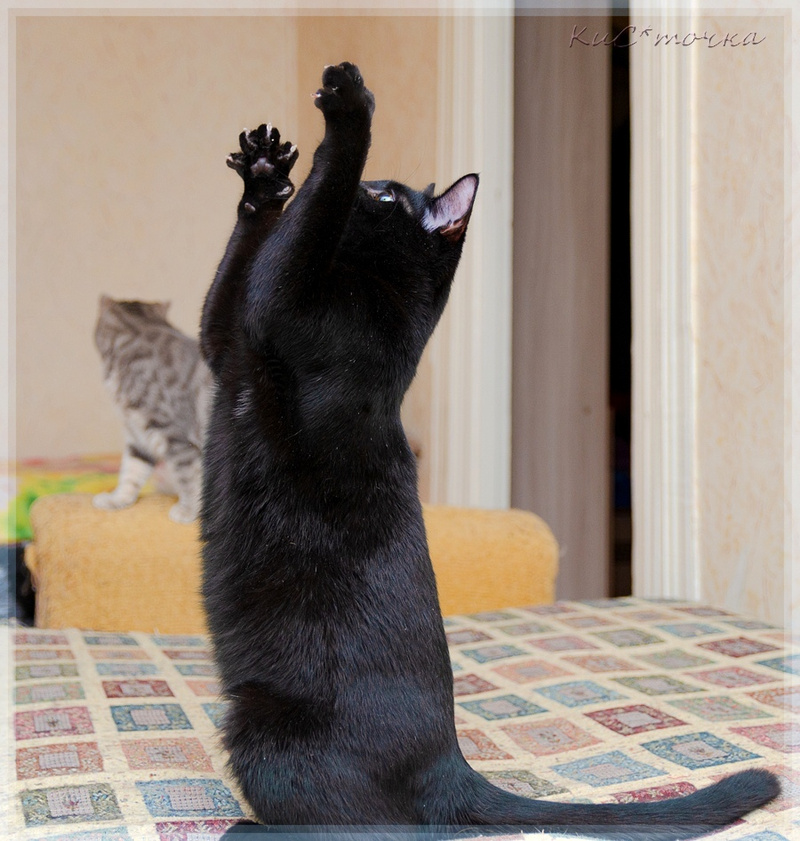 Ещё он целуется. Подойдёт, приласкает, поцелует, начинает громко мурчать, то ли чувствует, что человеку требуется ласка и внимание. Очень контактный, общительный парень.
