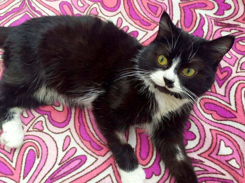 Годовалый котик по имени Оникс. Ослабевшего до того, что не мог стоять на лапах, котика подбросили в коробке к зоомагазину.