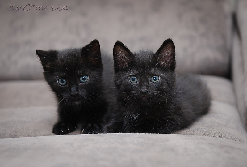 Малышки-чернышки, которые уже научились метко пользоваться лоточком, лазать по когтеточке, кушать сухой корм и играть-играть-играть!