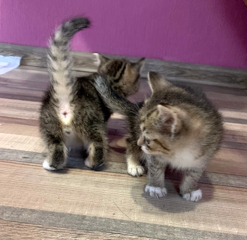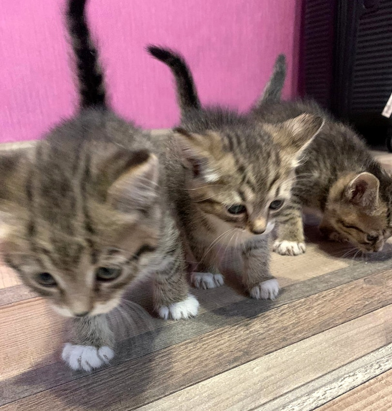 Пол котят пока определить сложно, предположительно две девочки и мальчик.