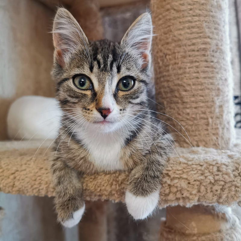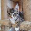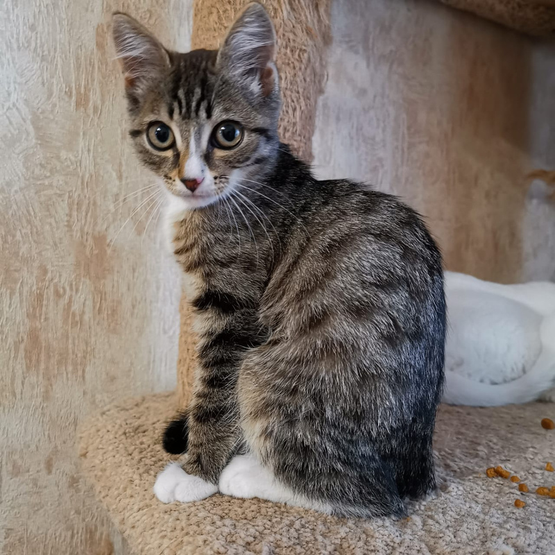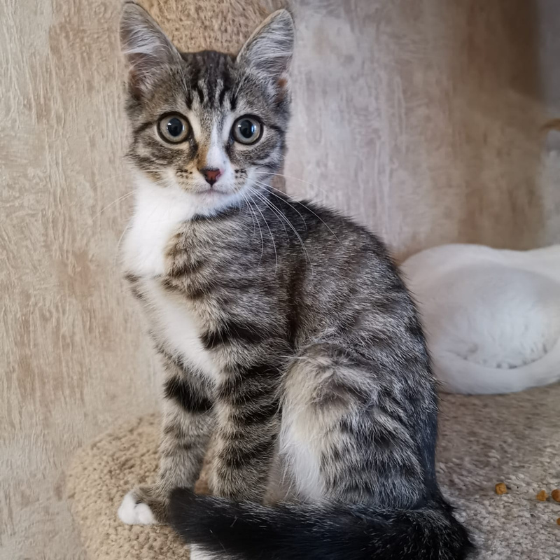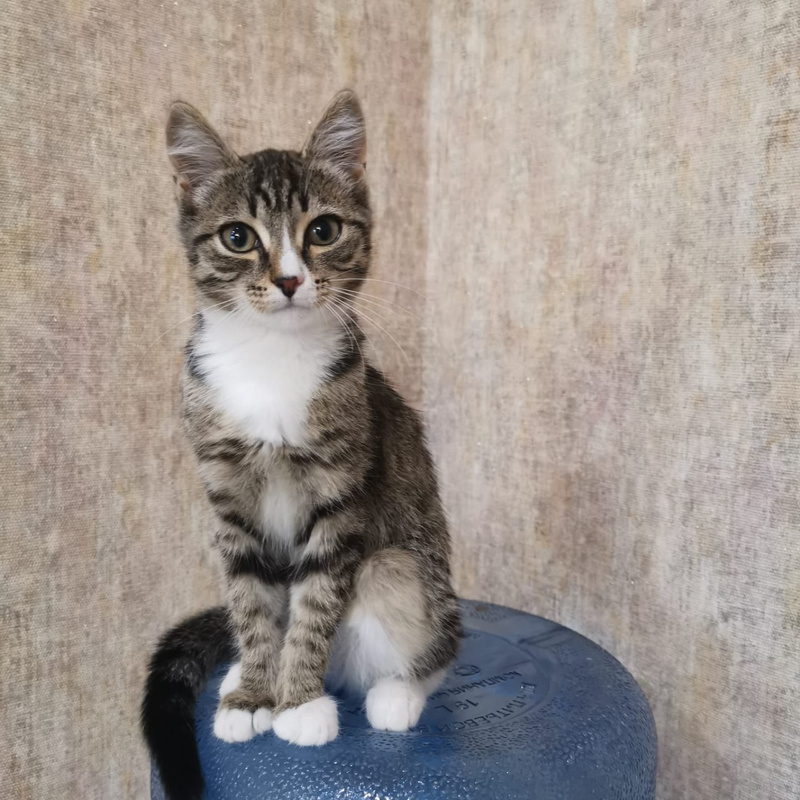 Возраст около 2.5 мес. Красивая, изящная - очаровательная мордаха, шубка украшена красивой манишкой, лапки в белых носочках. Нюся самостоятельная, деловая, любопытная. Любит играть, бегать с другими котятами, с удовольствием смотрит в окошко или лежит калачиком в лежанке, греется на солнышке.