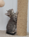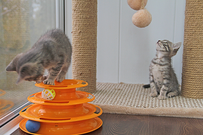 С первых дней прибывания в квартире отлично освоили лоток и когтеточку, нашли общий язык со всеми обитателями квартиры, включили ласкательную функцию.