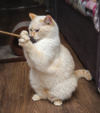Комок энергии и позитива. Ураганом носится по квартире за другими кошками, уверенная, что они просто обязаны играть с нею. Но если все спят и поиграть не с кем, Янтаринка играет одна. Для игр ей необходимо много разноплановых игрушек, которые она носит во рту, подкидывает, прячет в тоннель. А потом усталая, но довольная, Янка идет спать на диван, частенько вместе с любимой игрушкой. Не навязчива, но на ручках сидит.