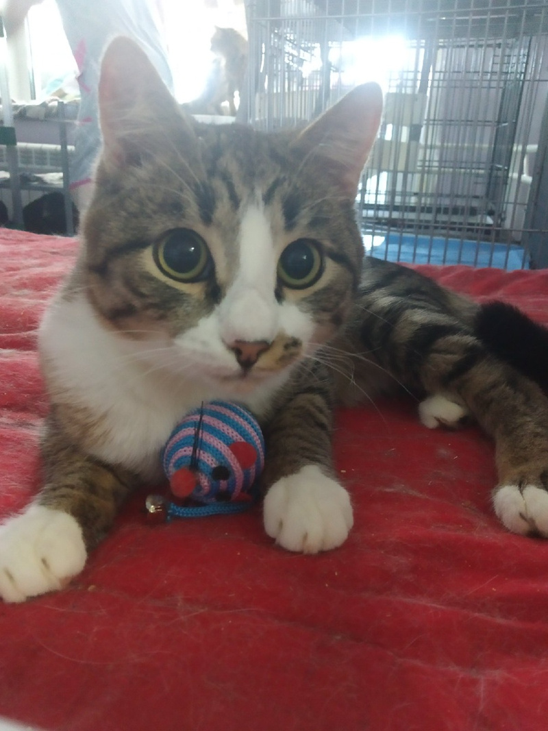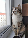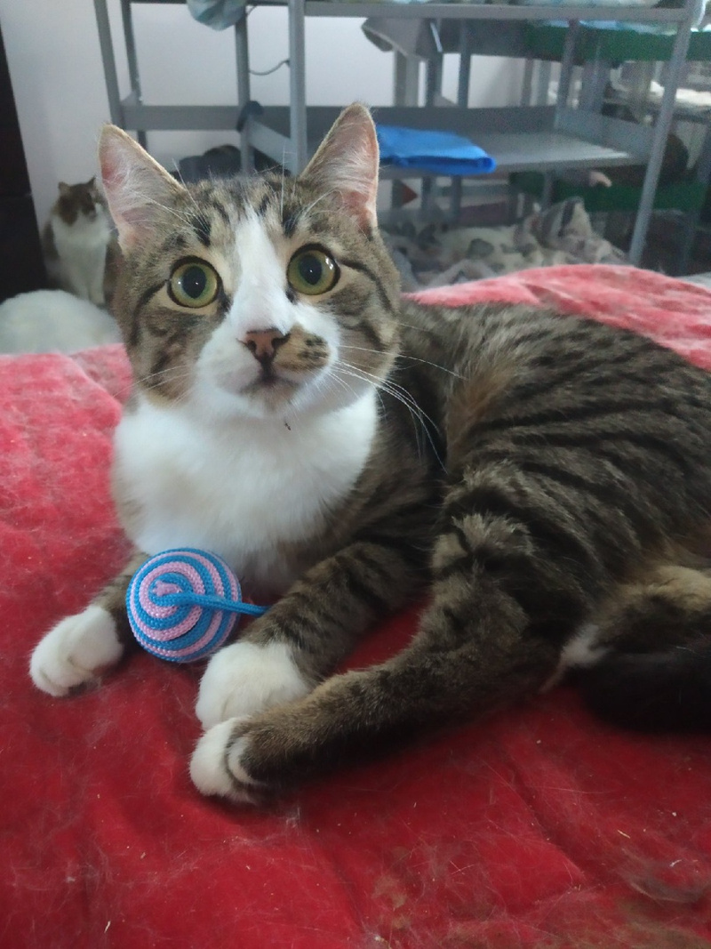 Отлично ладит с другими кошками, ручной, доверчивый и очень ласковый. Как все ребятишки, любит поиграть.