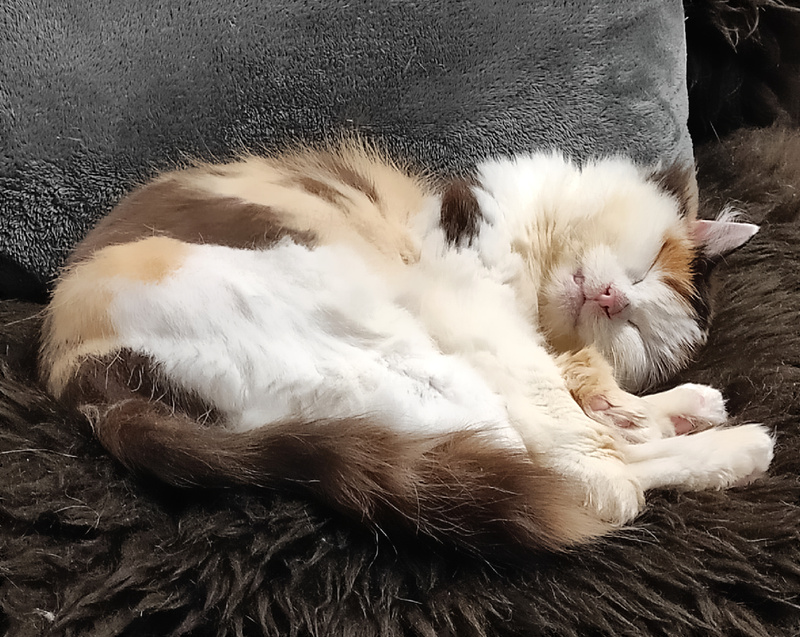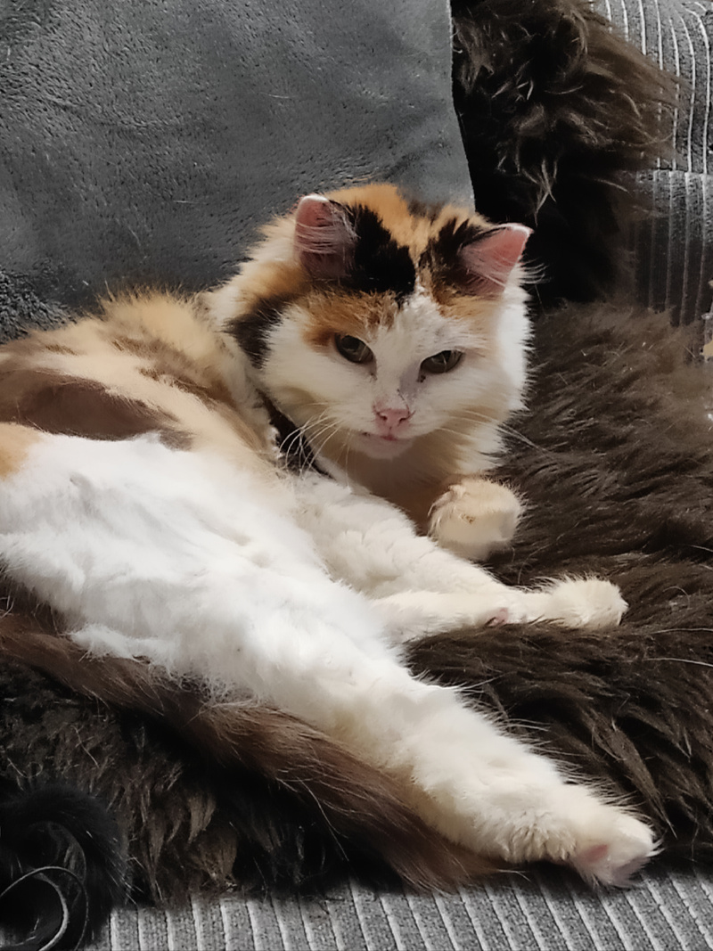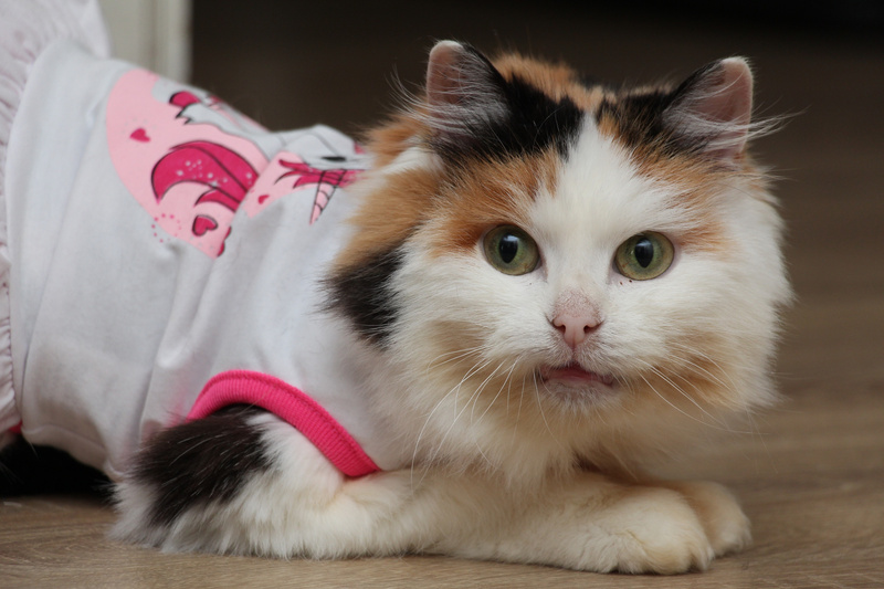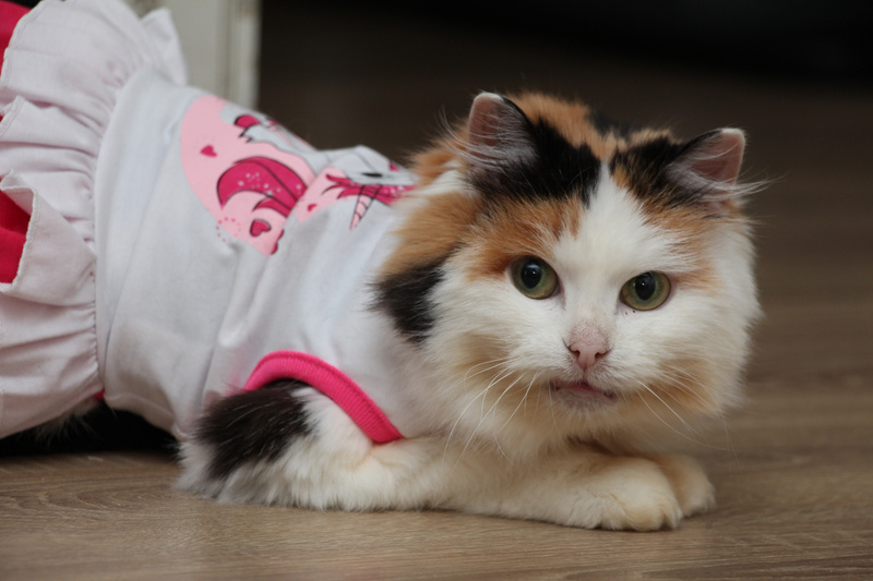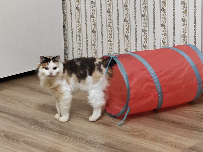 Подбираем для Стеши семью, заботливую, сердечную, которая окружит кошку вниманием и всяческой заботой. Миниатюрная кошка-улыбака, коренастая, толстолапенькая, мордочка задорная, носик розовый, штанишки пушистые, сама яркая, креативная. Сейчас шубка подстрижена от колтунов, когда обрастет, будет пушистая и богатая. По характеру Стеша ненавязчивая, приходит помурчит на ручках и уходит, но всегда где то рядом, спокойная и комфортная. Любит играть, дразнилки - наше всё, как разбегается, взгляд сразу озорной , хитрый, ловко и быстро ловит свою игрушечную добычу).